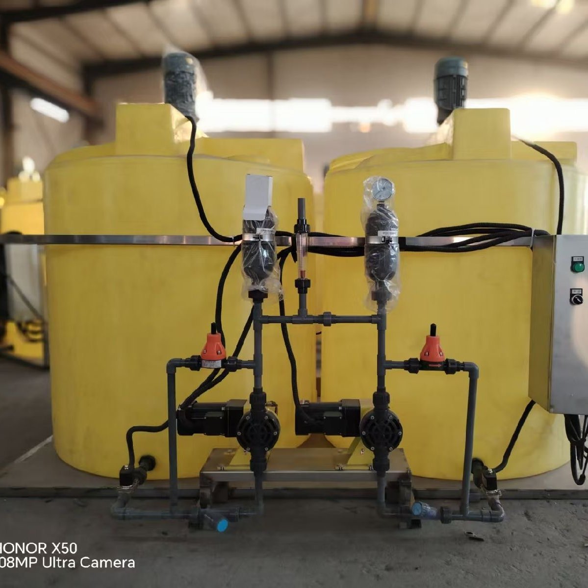 1、用户选用加药装置时,先根据系统需要投加溶液量来确定选用规格(包括计量泵参数、搅拌箱容积、溶液箱容积及现场条件),再根据投加情况、确定投加情况,确定投加方式(一般采用“一开一备”的方式)