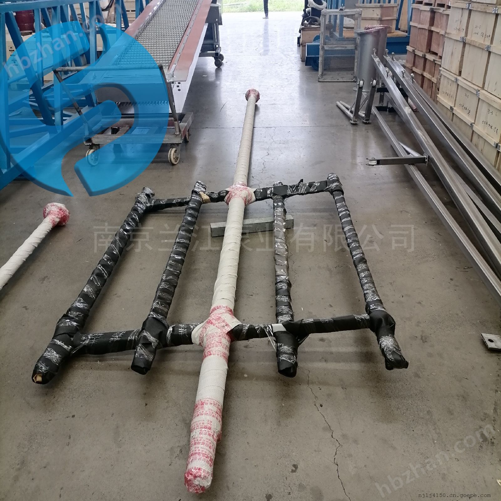 jbk双层搅拌机如图所示,由搅拌轴、框式搅拌桨叶、轴承装置、机座和驱动装置组成。