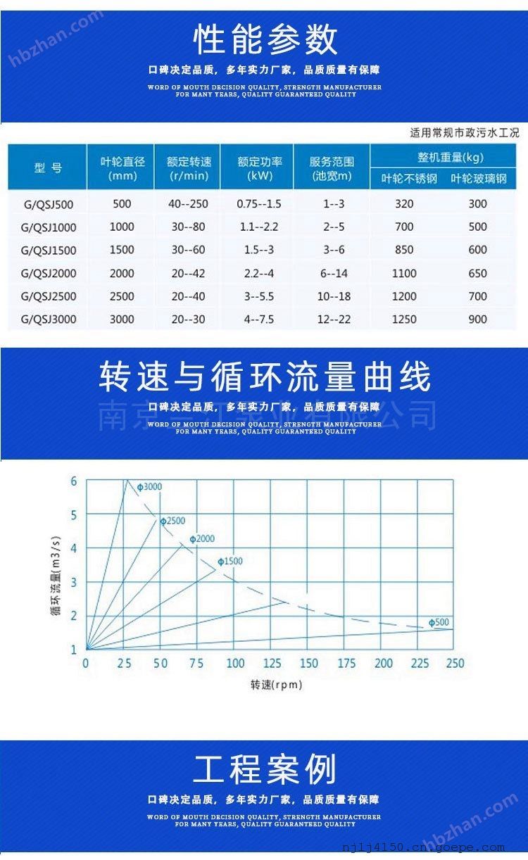 三、双曲面搅拌机 厌氧池调节池混凝池搅拌器工作特性: