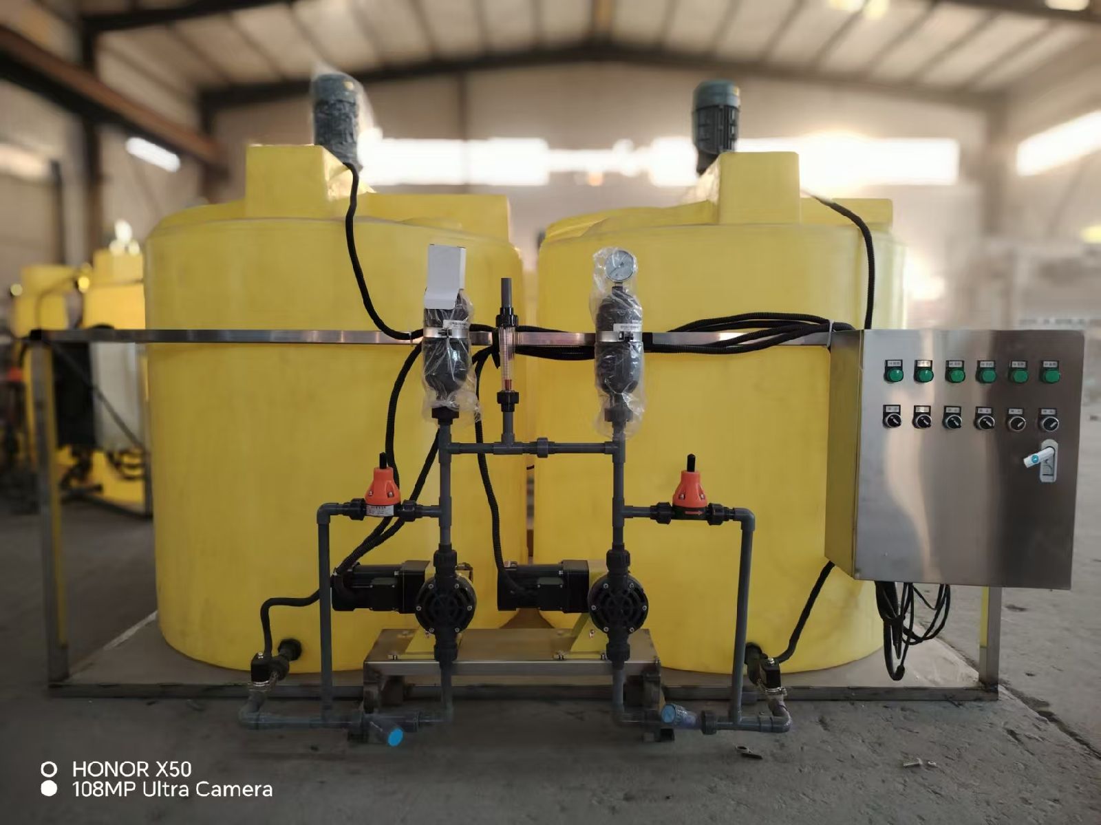 1、用户选用加药装置时,先根据系统需要投加溶液量来确定选用规格(包括计量泵参数、搅拌箱容积、溶液箱容积及现场条件),再根据投加情况、确定投加情况,确定投加方式(一般采用“一开一备”的方式)