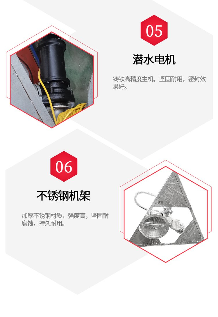 该机主要由浮筒、导流筒、潜水电机和叶轮等部件组成。导流筒借助浮筒的浮力呈竖直方向悬浮在水面下,吸口朝上,贴近水面,出水口向下,潜水电机和叶轮置于导流筒中。当电机驱动叶轮高速旋转时,导流筒吸口上方附近的浮泥连同水被吸入导流筒,在叶轮的作用下经破碎后从导流筒出口泵出,被送入水下。由于浮泥中的空穴被水填充后,其比重大于污水的比重,泵入水下后不再上浮。同时,吸沫机在工作时还作脉动升降运动,吸沫口跃出水面捕捉泡沫和浮泥,可有效破除轻质泡沫和块状浮泥在水面上形成的“搭桥”。由于吸沫口上方的水被抽走后形成的液位差使较远处的泡沫浮泥不断地流向吸沫口上方,从而达到清除整池水面泡沫浮泥的目的.